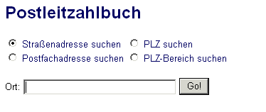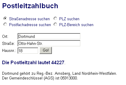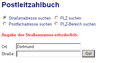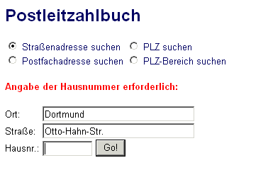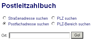 Hier können Sie die Postleitzahl zu einer bekannten Adresse suchen.