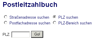Der Radiobutton "PLZ suchen" muss markiert sein.