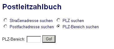 Der Radiobutton "PLZ-Bereich suchen" muss markiert sein.